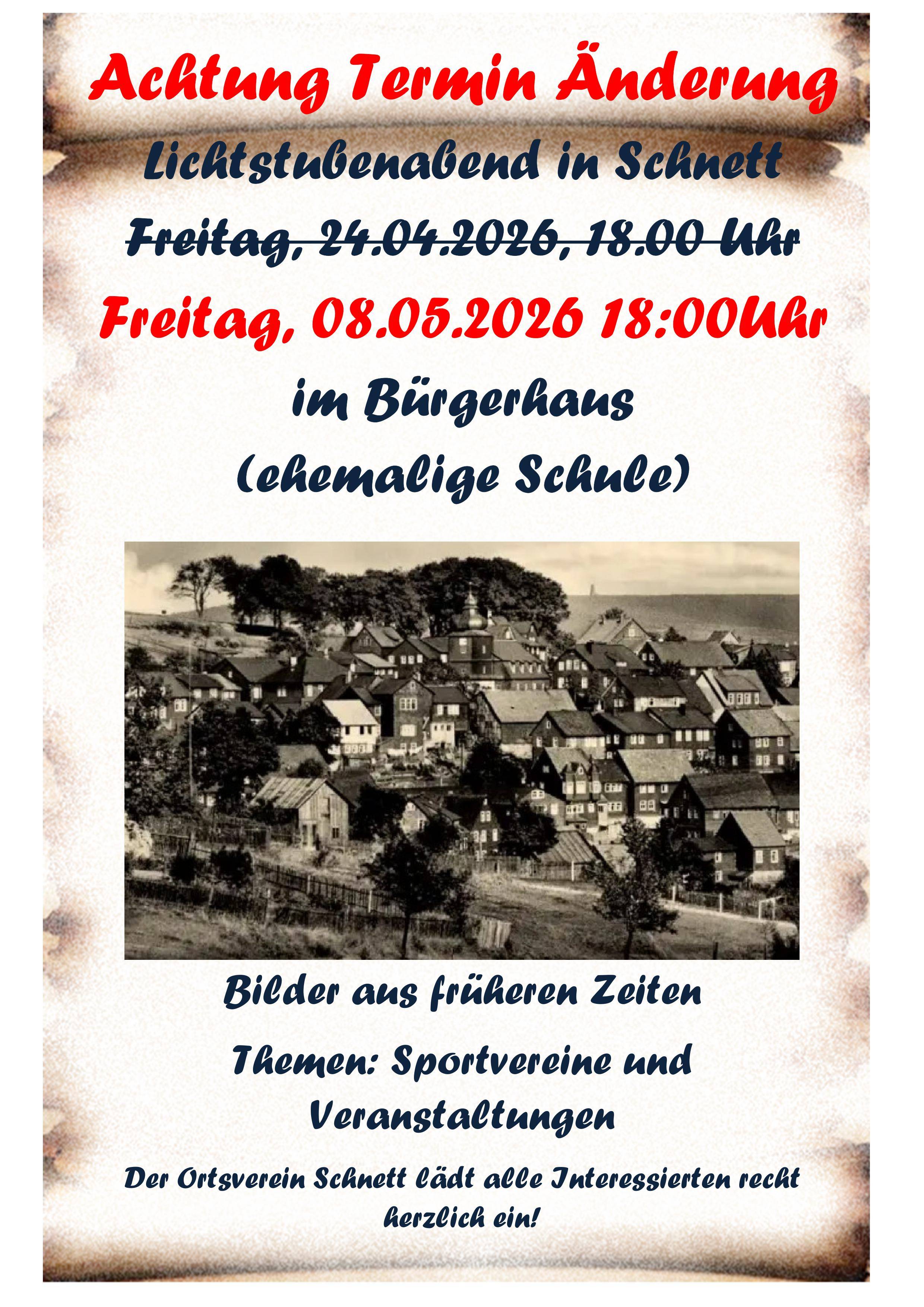 Der Ortsverein Schnett lädt alle Interessierten reht herzlich ein!