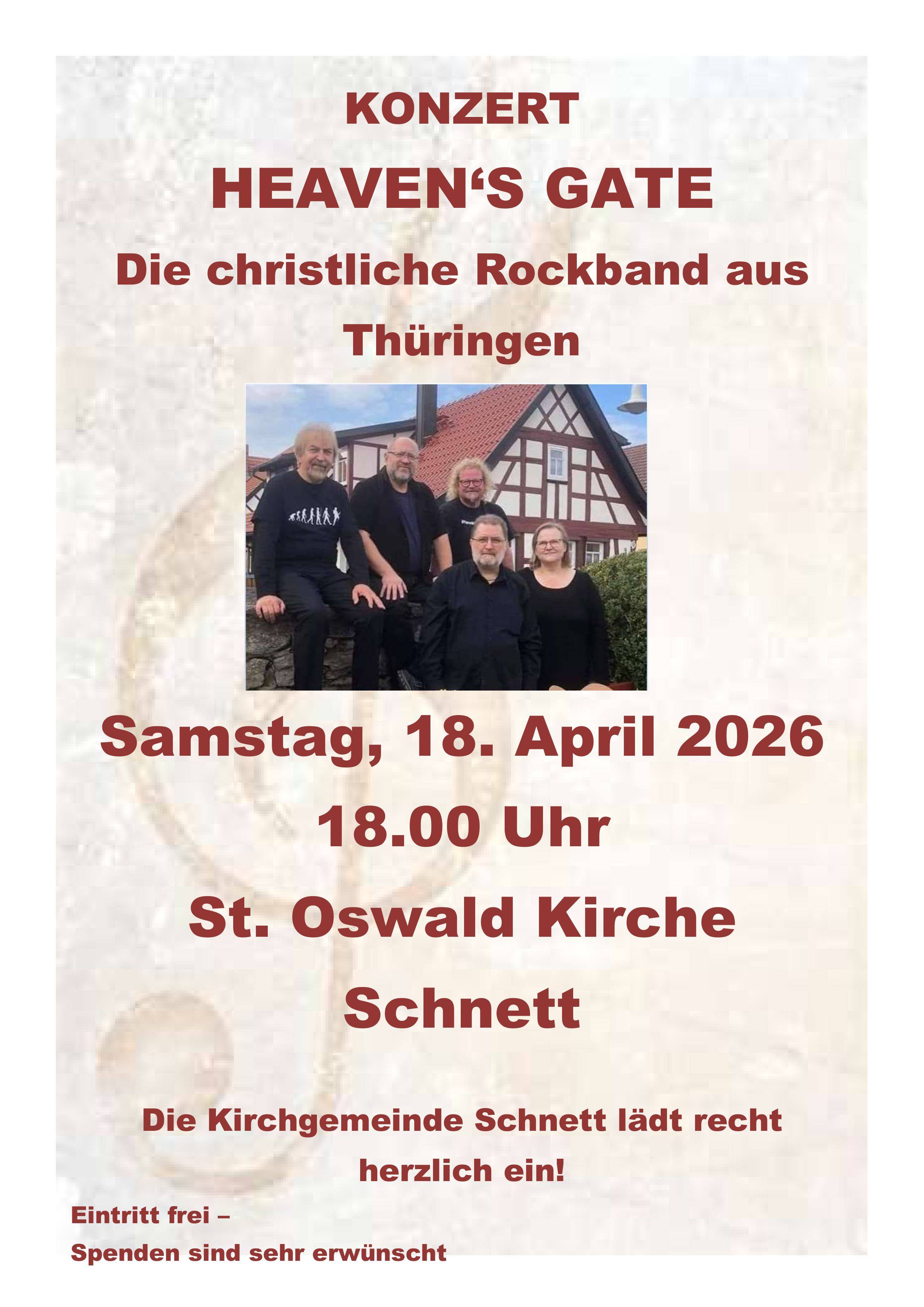 ... die christliche Rockband aus ThüringenDie Kirchgemeinde Schnett lädt recht herzlich ein!