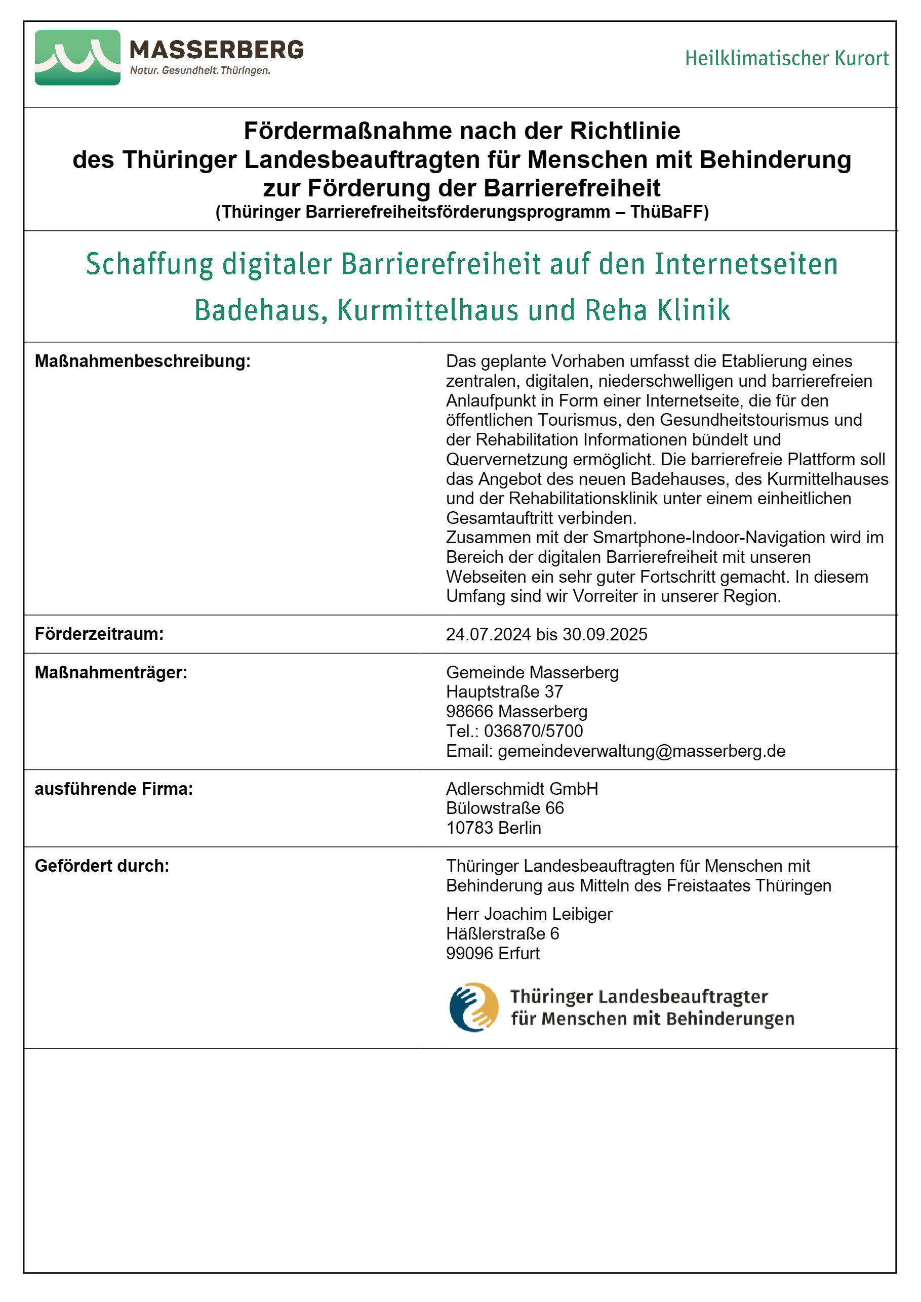 Fördermaßnahme nach der Richtlinie des Thüringer Landesbeauftragten für Menschen mit Behinderung zur Förderung der Barrierefreiheit (Thüringer Barrierefreiheitsförderungsprogramm – ThüBaFF).